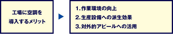 | 製品価値の向上 | 空調設備導入工場での製品とそうでない製品では市場の価値が異なります。 |